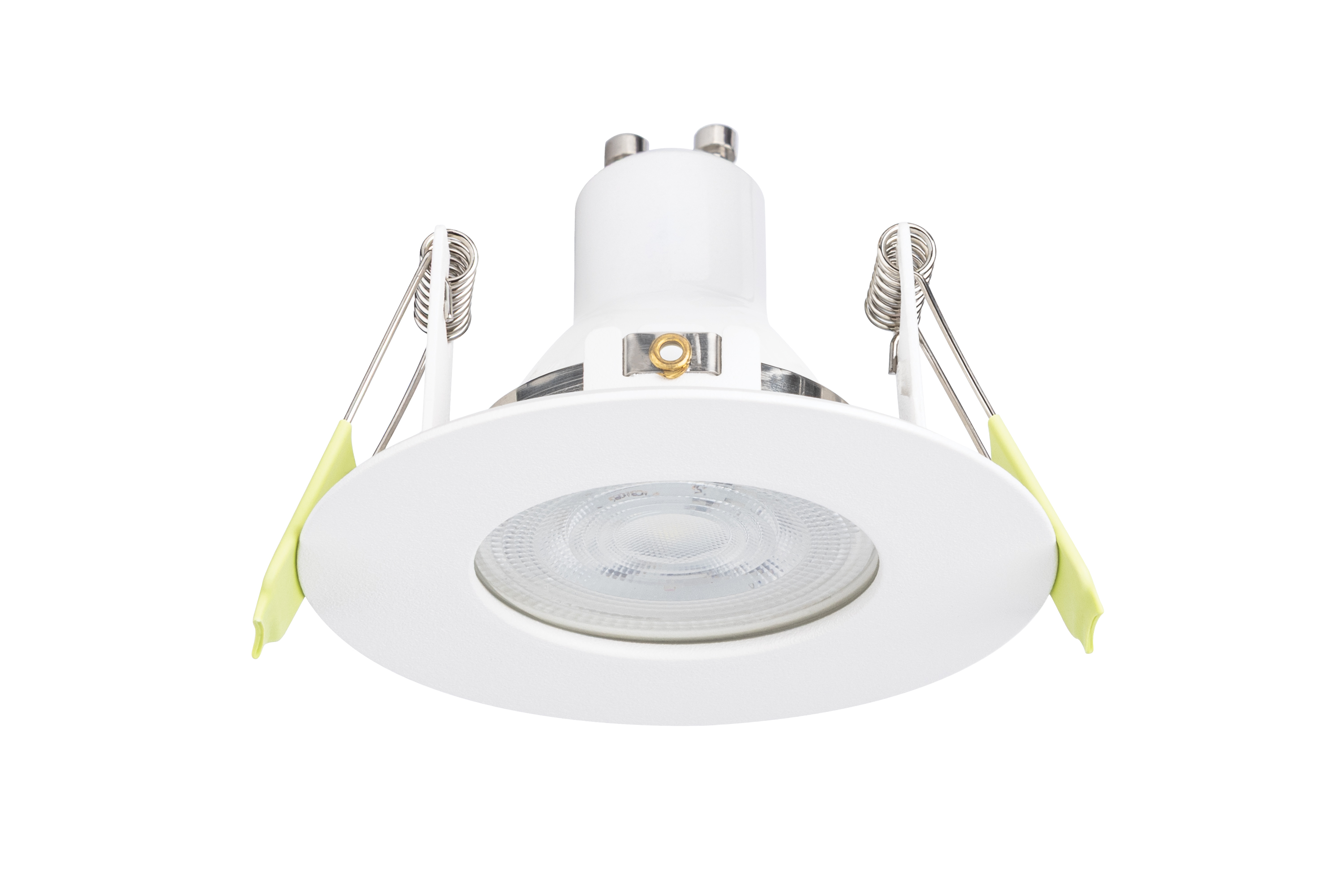 EVOFIRE 85 FIRE RATED DOWNLIGHT 70MM CUTOUT IP65 WHITE ROUND +GU10 HOLDER & INSULATION GUARD INTEGRAL
