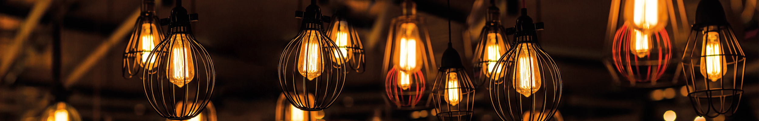 La collection d'ampoules vintage ultra-chaudes Sunset comprend une variété de grands globes et d'ampoules en forme de "Cage d'écureil" (ST64) pour une utilisation dans les zones d'accueil et à la maison.