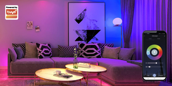 Tuya est un système de contrôle intelligent qui fonctionne avec un signal Wi-Fi de 2,4 GHz. Le système Tuya est conçu pour permettre la connectivité de tous les appareils intelligents dans un lieu, et pas seulement l’éclairage. Les appareils sont fabriqués avec un module Tuya à l’intérieur pour permettre la connectivité au système, lequel est contrôlé par l’application Tuya.