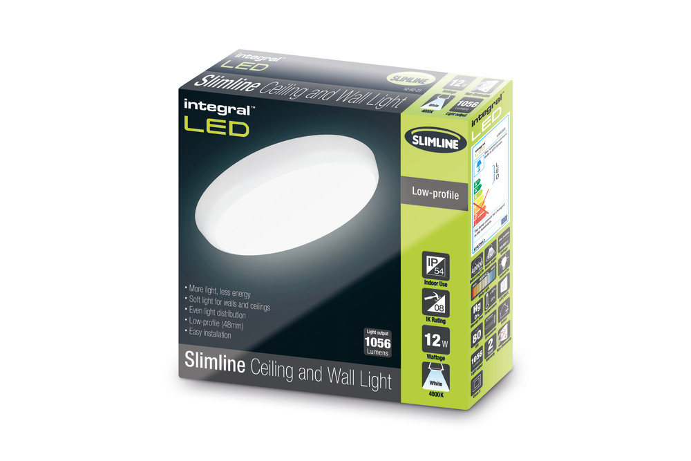 SLIMLINE CEILING/WALL LIGHT 250MM DIA IP54 1056LM 12W 4000K IK10 120 BEAM NON-DIMM WHITE 88LM/W INTEGRAL