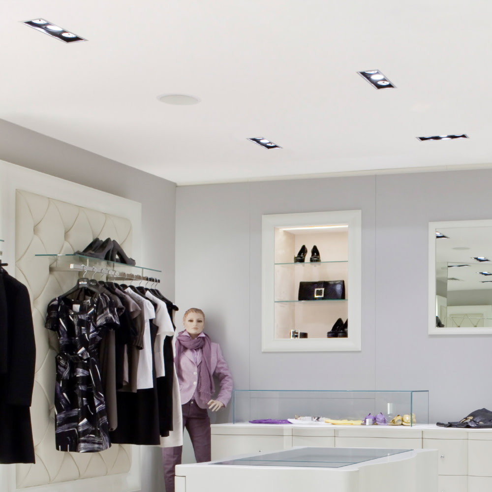 Les downlights AccentPlus Gimbal sont la solution économique parfaite pour les environnements de vente au détail. Ils acceptent pratiquement toutes les ampoules GU10 ou MR16 du marché ainsi que les modules d'éclairage à LED intégrés pour un rendement lumineux plus puissant (voir les produits associés ci-dessous). Pour les installations où un rendu parfait des couleurs est requis, nous recommandons nos GU10 à IRC élevé. Le luminaire est inclinable à 30 degrés dans les deux sens et le faisceau lumineux peut être encore affiné en plaçant la bague intérieure à la position requise sur 365° sur le plan horizontal. Le remplacement de l'ampoule est également simple et rapide, la bague intérieure étant amovible de la face avant du luminaire, plutôt que d'avoir à retirer l'ensemble du luminaire du plafond.