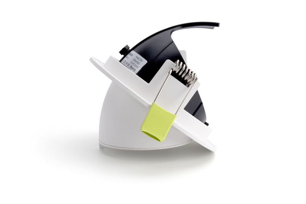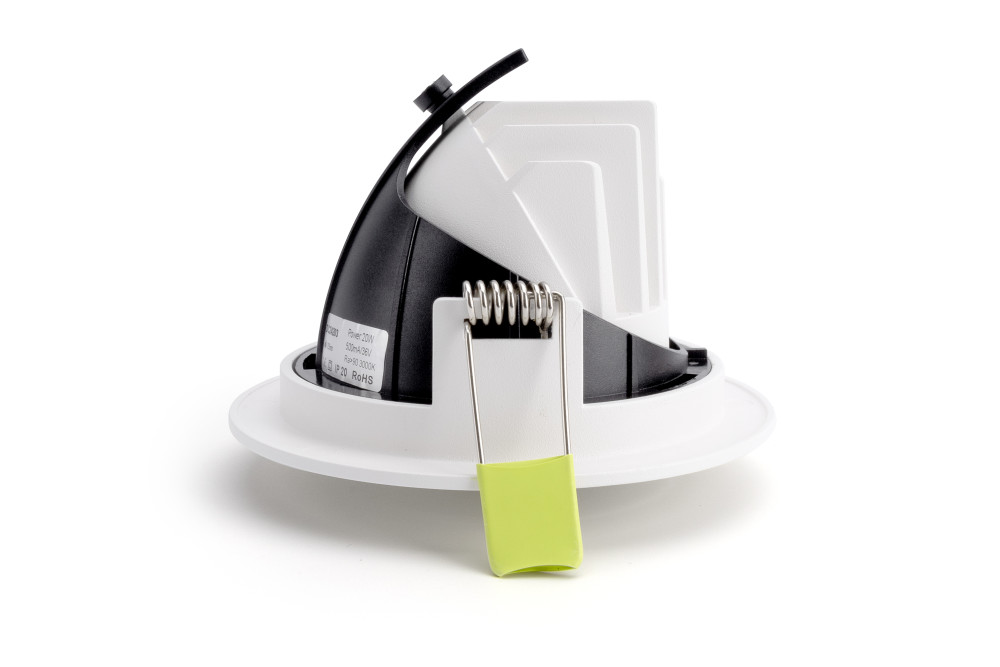 Conçu dans un souci de précision, le luminaire est doté d'une lunette entièrement rotative et d'un angle de faisceau de 36°, complété par une inclinaison vers le bas de 38°. Cette conception innovante permet au downlight de s'étendre sous la ligne de plafond, ce qui permet un placement précis du faisceau et l'éclairage de zones que les downlights standard ne peuvent pas atteindre.
