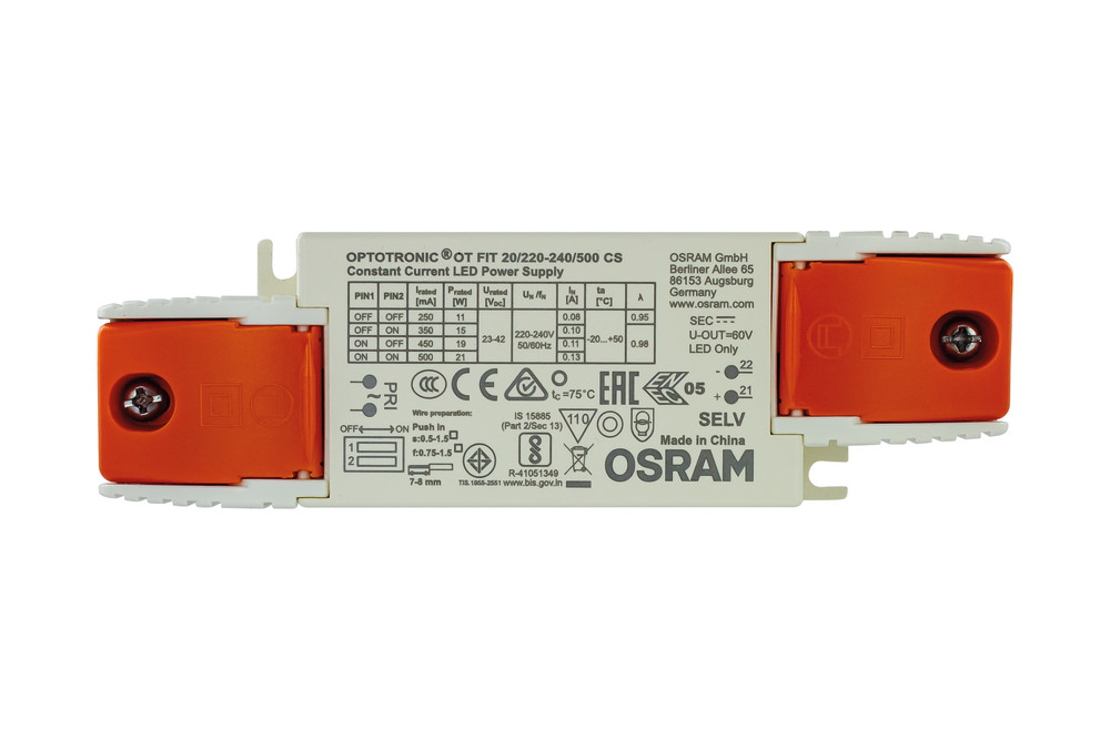 ADJUSTABLE CONSTANT CURRENT DRIVER 11-21W 250-500MA IP20 NON-DIM 23-42V OUTPUT INTEGRAL