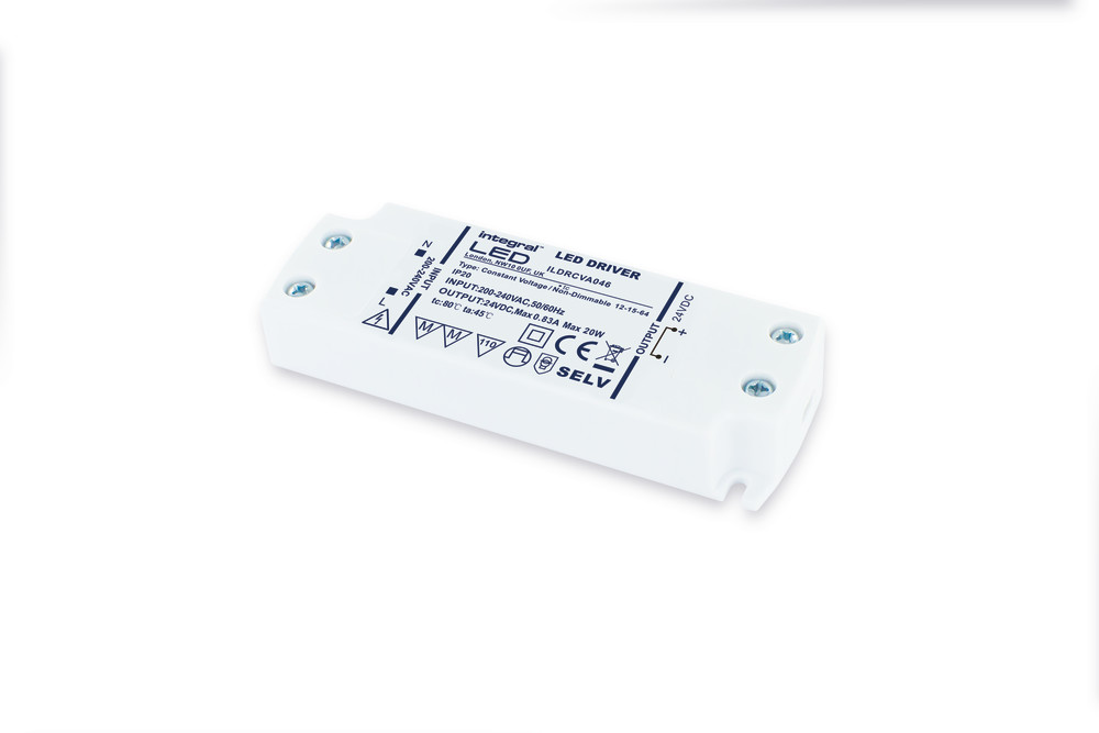 CONSTANT VOLTAGE DRIVER 20W 24VDC IP20 NON-DIMM 200-240V INPUT INTEGRAL