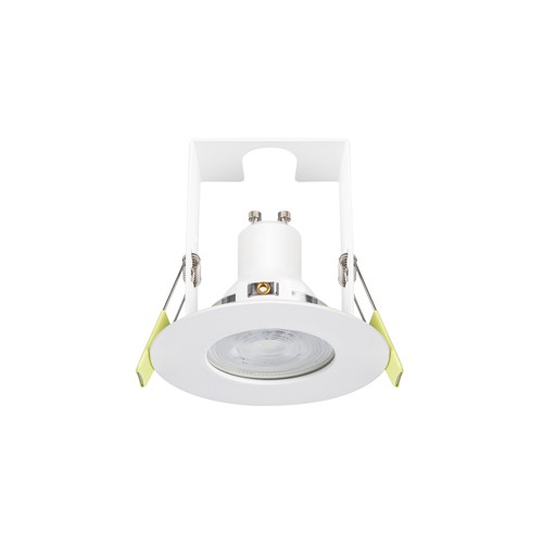 EVOFIRE 85 FIRE RATED DOWNLIGHT 70MM CUTOUT IP65 WHITE ROUND +GU10 HOLDER & INSULATION GUARD INTEGRAL