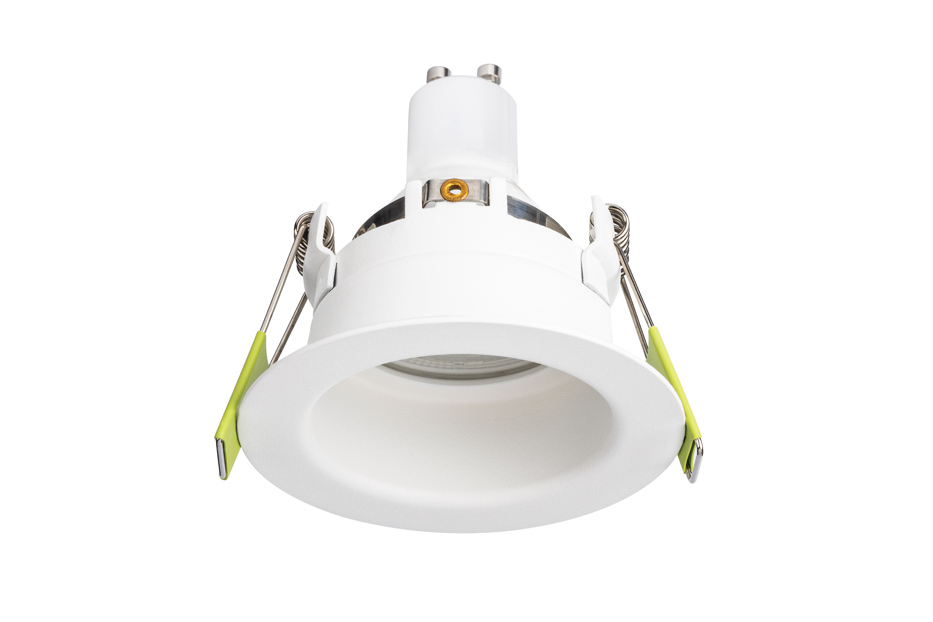 EVOFIRE 85 FIRE RATED DOWNLIGHT 70MM CUTOUT IP65 WHITE RECESSED +GU10 HOLDER INTEGRAL
