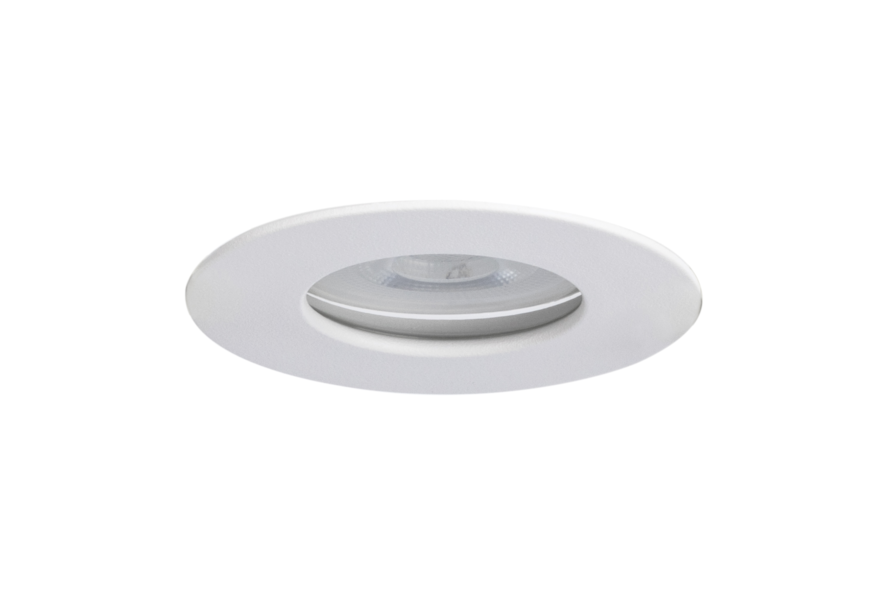 EVOFIRE MINI 55 MICRO BEZEL FIRE RATED DOWNLIGHT 43MM CUTOUT 55MM DIAMETER IP65 WHITE ROUND +GU10 HOLDER INTEGRAL