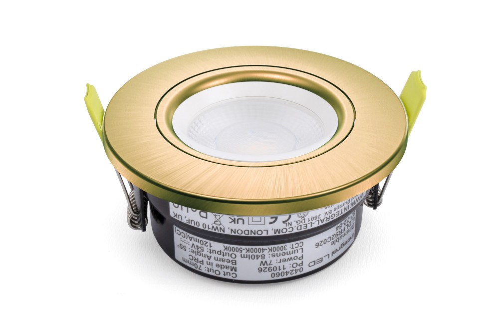 LUXFIRE II FIRE RATED DOWNLIGHT TILTABLE ANTIQUE BRASS BEZEL INTEGRAL