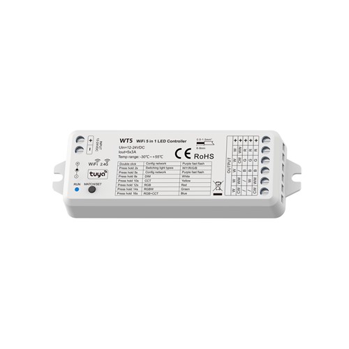 SKYDANCE WT5 LED CONTROLLER WIFI & RF 2.4GHZ 5-IN-1 RECEIVER APP CONTROLLED SINGLE COLOUR TO RGBCCT 12-24V CONSTANT VOLTAGE 360W(24V) INTEGRAL