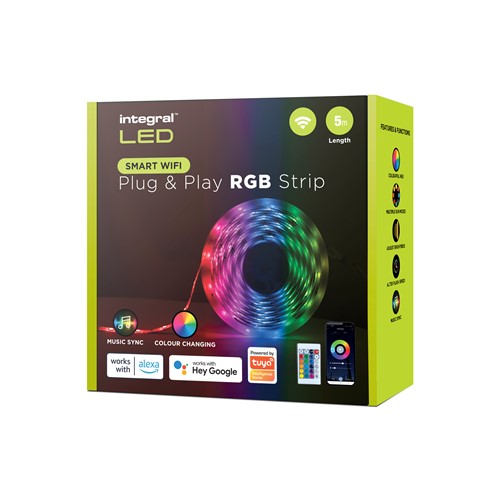 RGB PLUG & PLAY STRIP KIT IP54 4W/M 30LED/M 10MM WIDTH 5M BOX PACK WITH CONTROLLER & TUYA WIFI APP GOOGLE / ALEXA EU PLUG