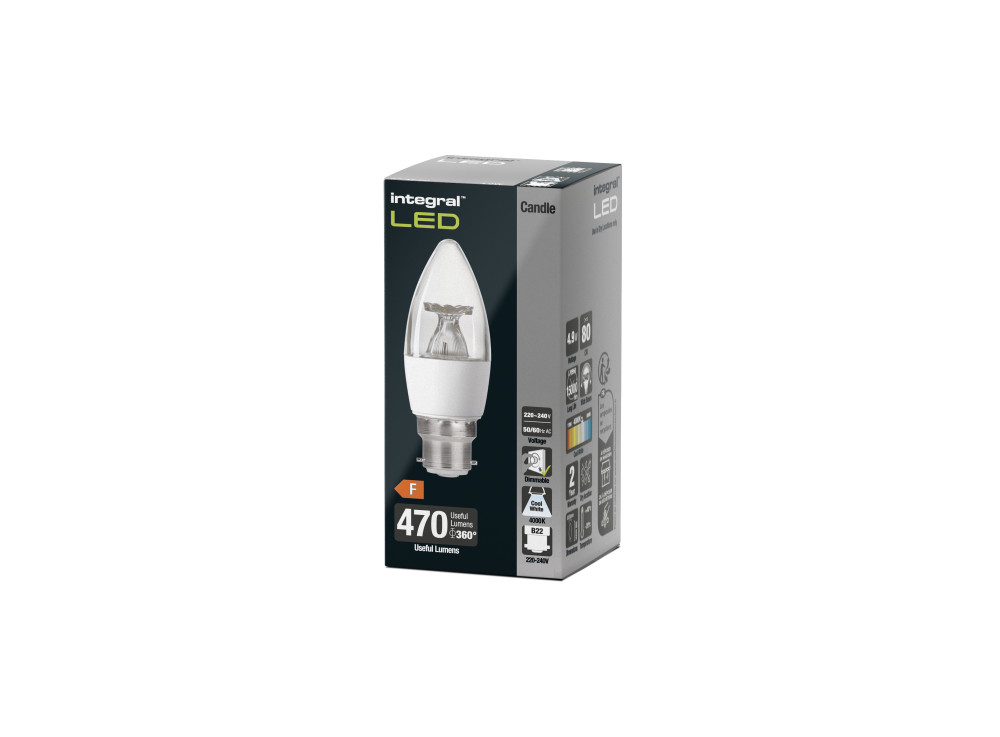 CANDLE BULB B22 470LM 4.9W 4000K DIMMABLE 240 BEAM CLEAR INTEGRAL