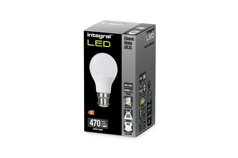 GLS BULB B22 470LM 4.8W 4000K DIMMABLE 240 BEAM FROSTED INTEGRAL