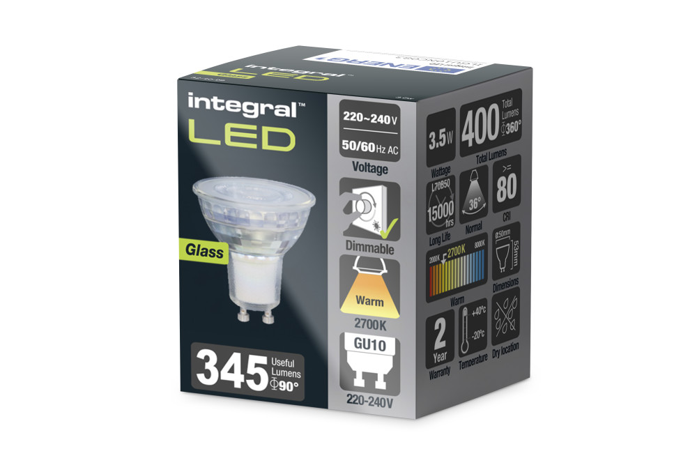 GLASS GU10 BULB 400LM 3.5W 2700K DIMMABLE 36 BEAM INTEGRAL