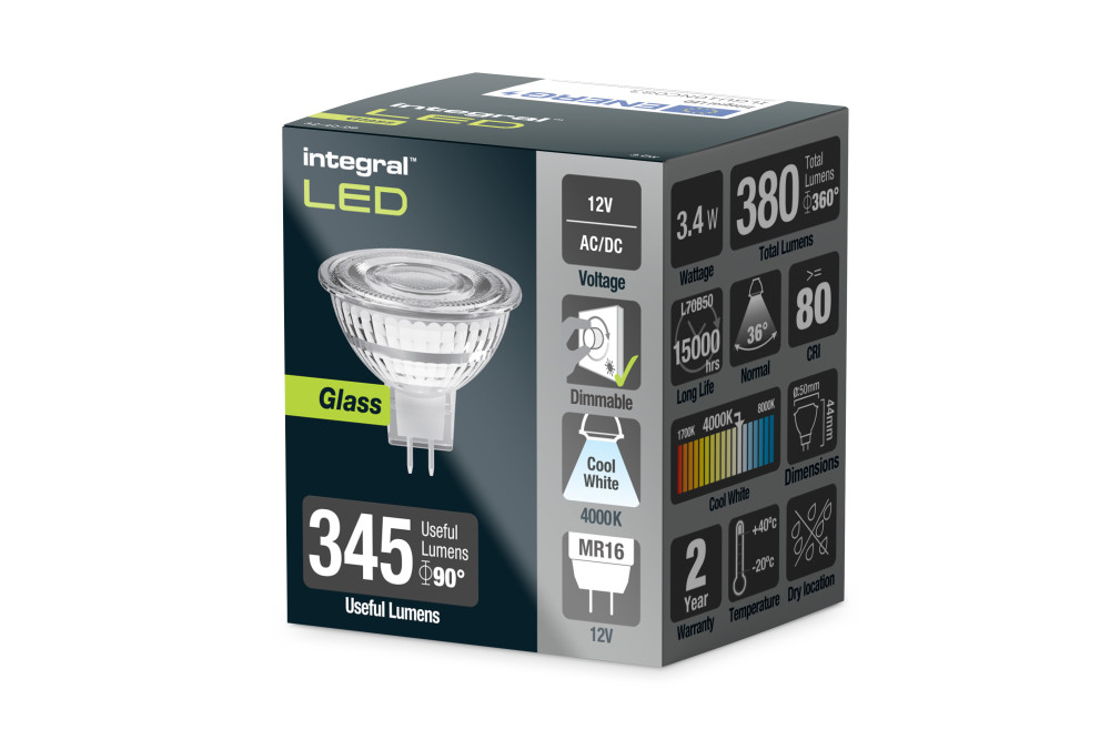 GLASS MR16 BULB GU5.3 380LM 3.4W 4000K DIMMABLE 36 BEAM INTEGRAL