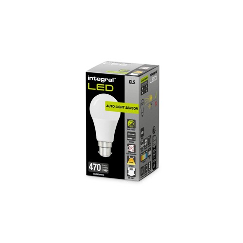 GLS BULB WITH DUSK TO DAWN DUAL SENSOR B22 470LM 4.8W 2700K NON-DIMM 240 BEAM FROSTED INTEGRAL