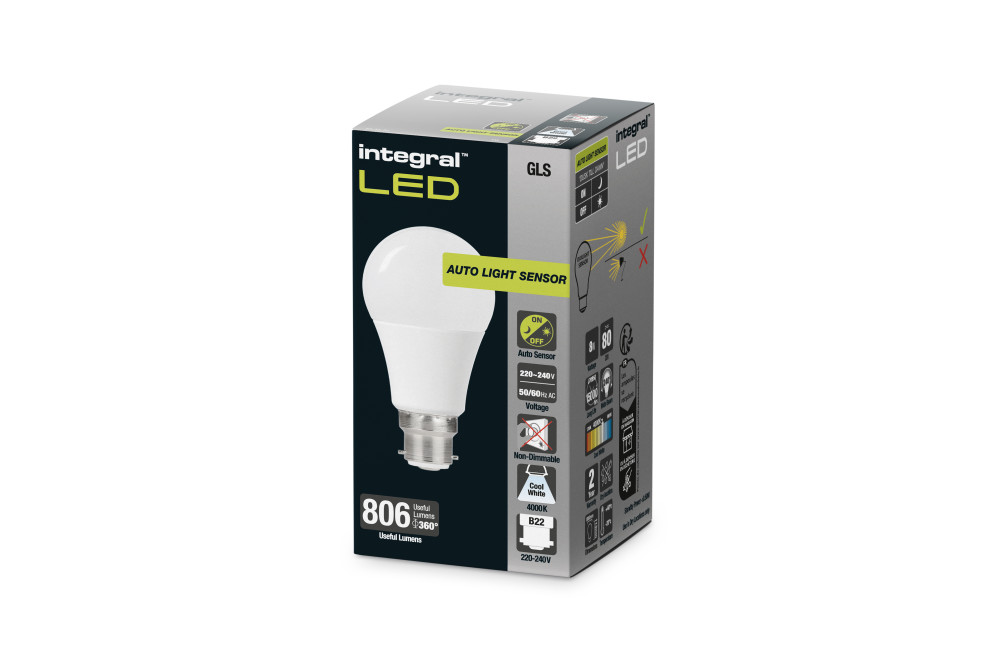 GLS BULB WITH DUSK TO DAWN DUAL SENSOR B22 806LM 8W 4000K NON-DIMM 240 BEAM FROSTED INTEGRAL