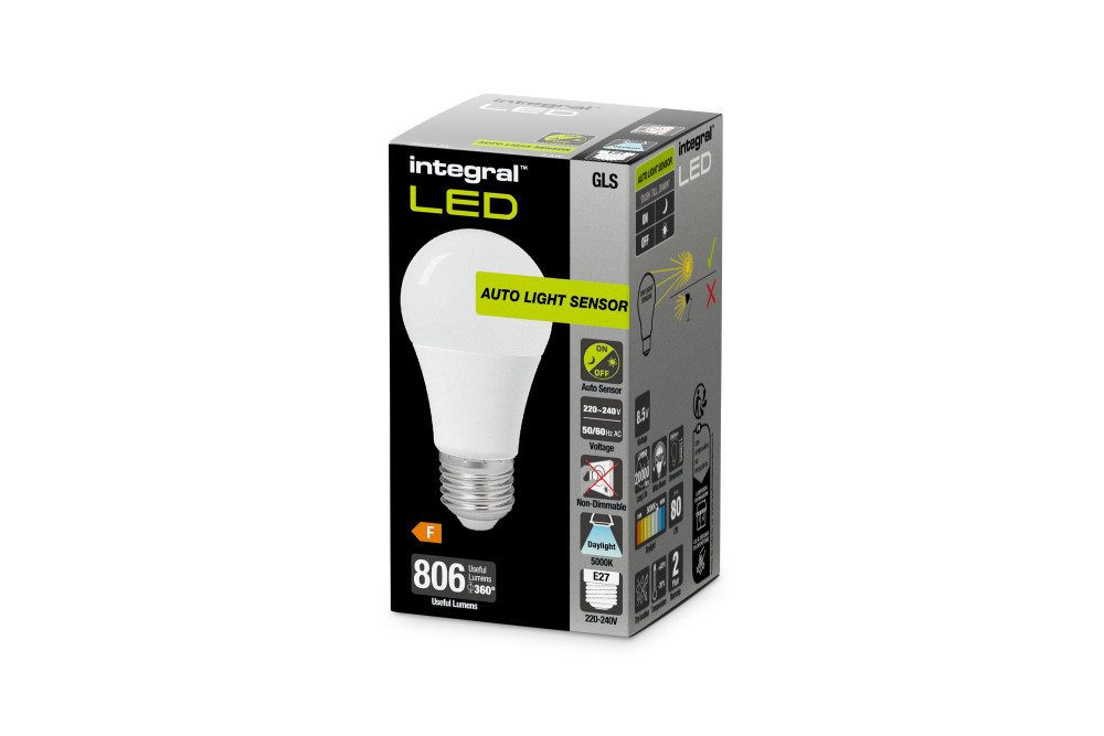 GLS BULB WITH DUSK TO DAWN DUAL SENSOR E27 806LM 8.5W 5000K NON-DIMM 240 BEAM FROSTED INTEGRAL