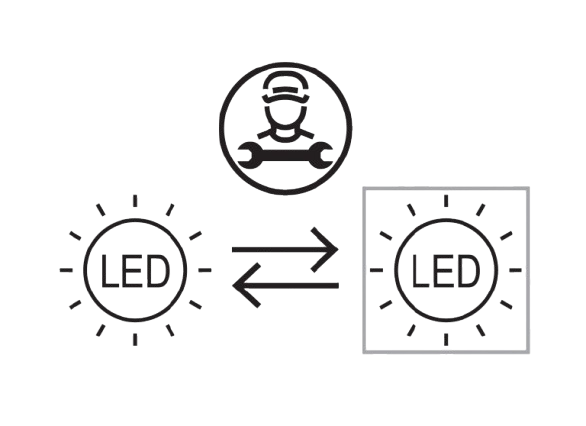 Ces pictogrammes ont pour but de guider les professionnels qualifiés sur les exigences de remplacement des sources lumineuses et, le cas échéant, des appareillages de commande.