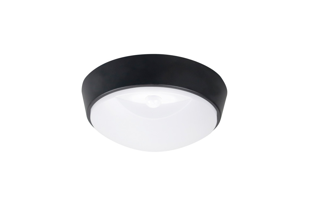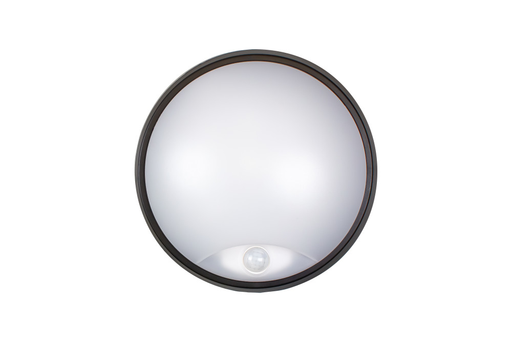 TOUGH SHELL COMPACT CIRCULAR PIR BULKHEAD 215MM DIA 10W 1100LM 3000/4000/6000K SWITCHABLE CCT IP65 IK10 110LM/W INLUDING WHITE AND BLACK BEZELS INTEGRAL LED