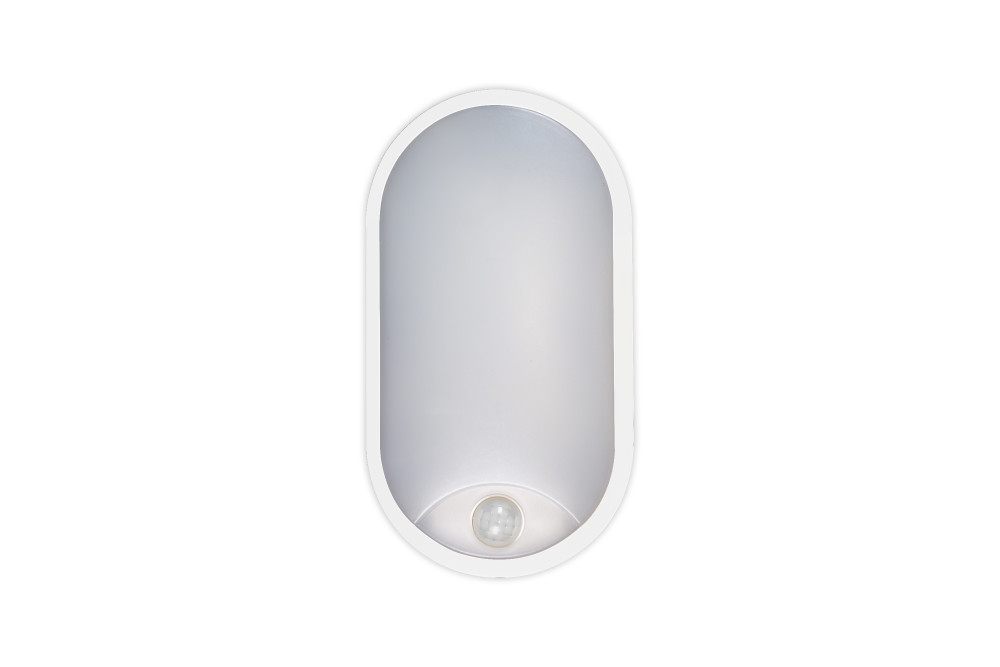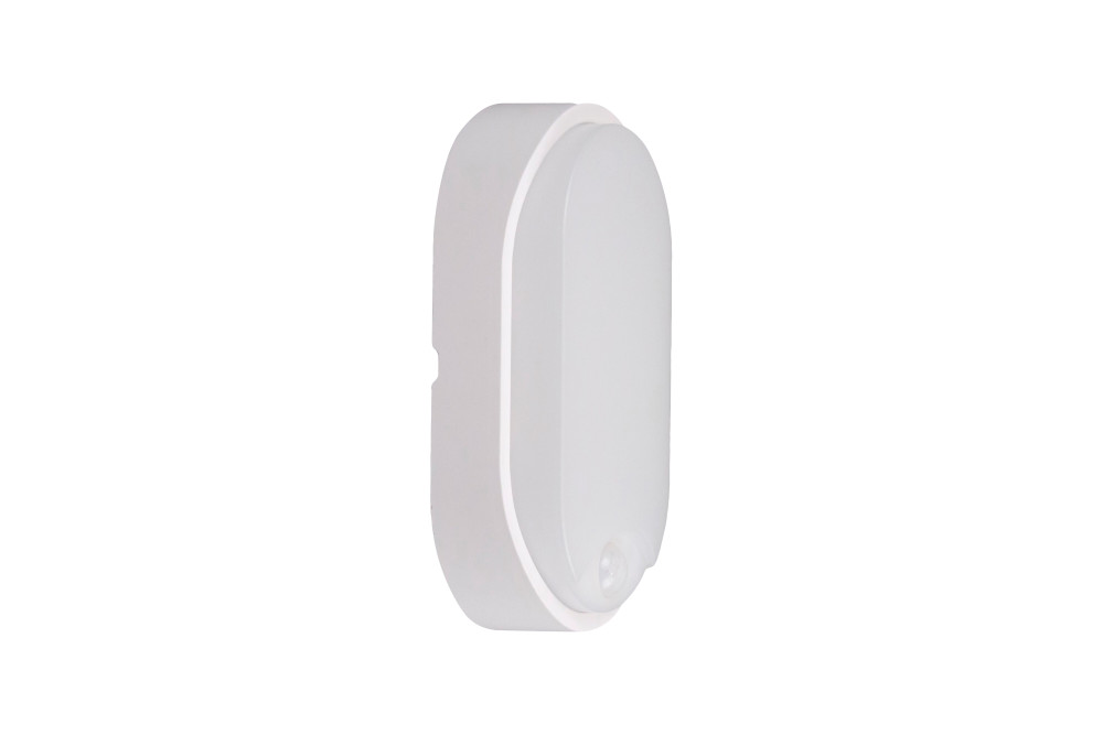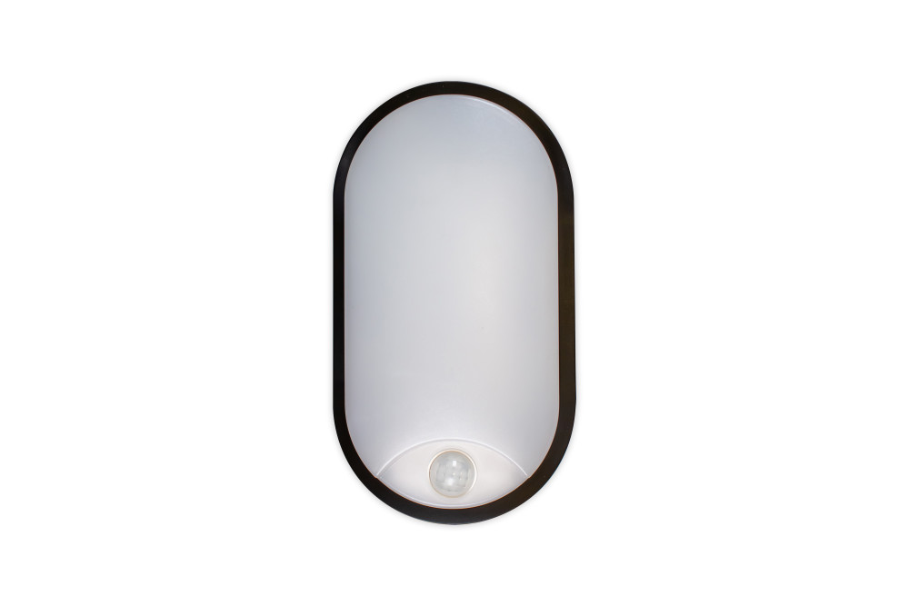 TOUGH SHELL COMPACT OVAL PIR BULKHEAD 213X120MM 10W 1100LM 3000/4000/6000K SWITCHABLE CCT IP65 IK10 110LM/W INLUDING WHITE AND BLACK BEZELS INTEGRAL LED