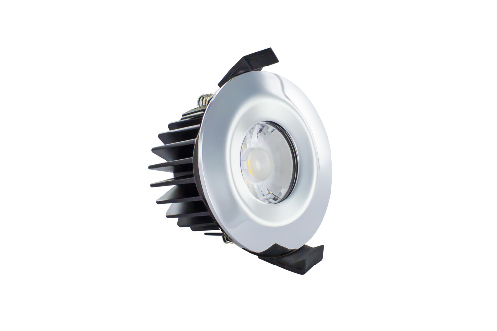 LOW-PROFILE FIRE RATED DOWNLIGHT 70-75MM CUTOUT IP65 430LM 6W 3000K 38 BEAM DIMMABLE 72LM/W POLISHED CHROME INTEGRAL