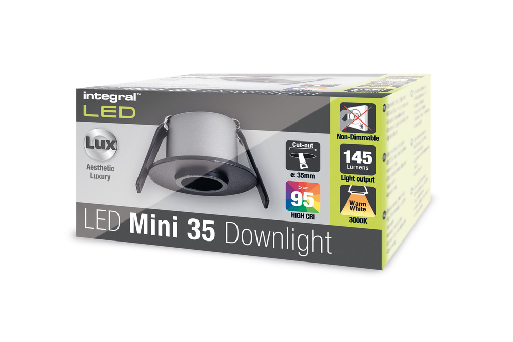 MINI DOWNLIGHT 35MM CUTOUT 3.3W 145LM 44LM/W 3000K 15 BEAM NON-DIM FINISH BLACK INTEGRAL