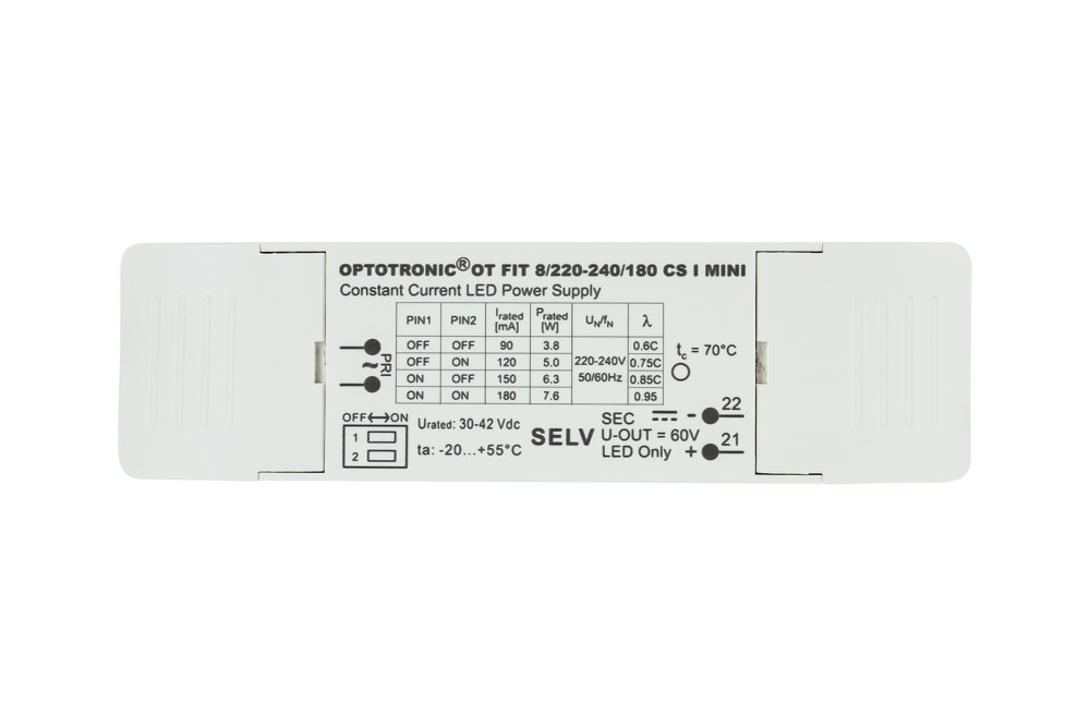 ADJUSTABLE CONSTANT CURRENT DRIVER 3-8W 90-180MA IP20 NON-DIM 30-42V OUTPUT INTEGRAL