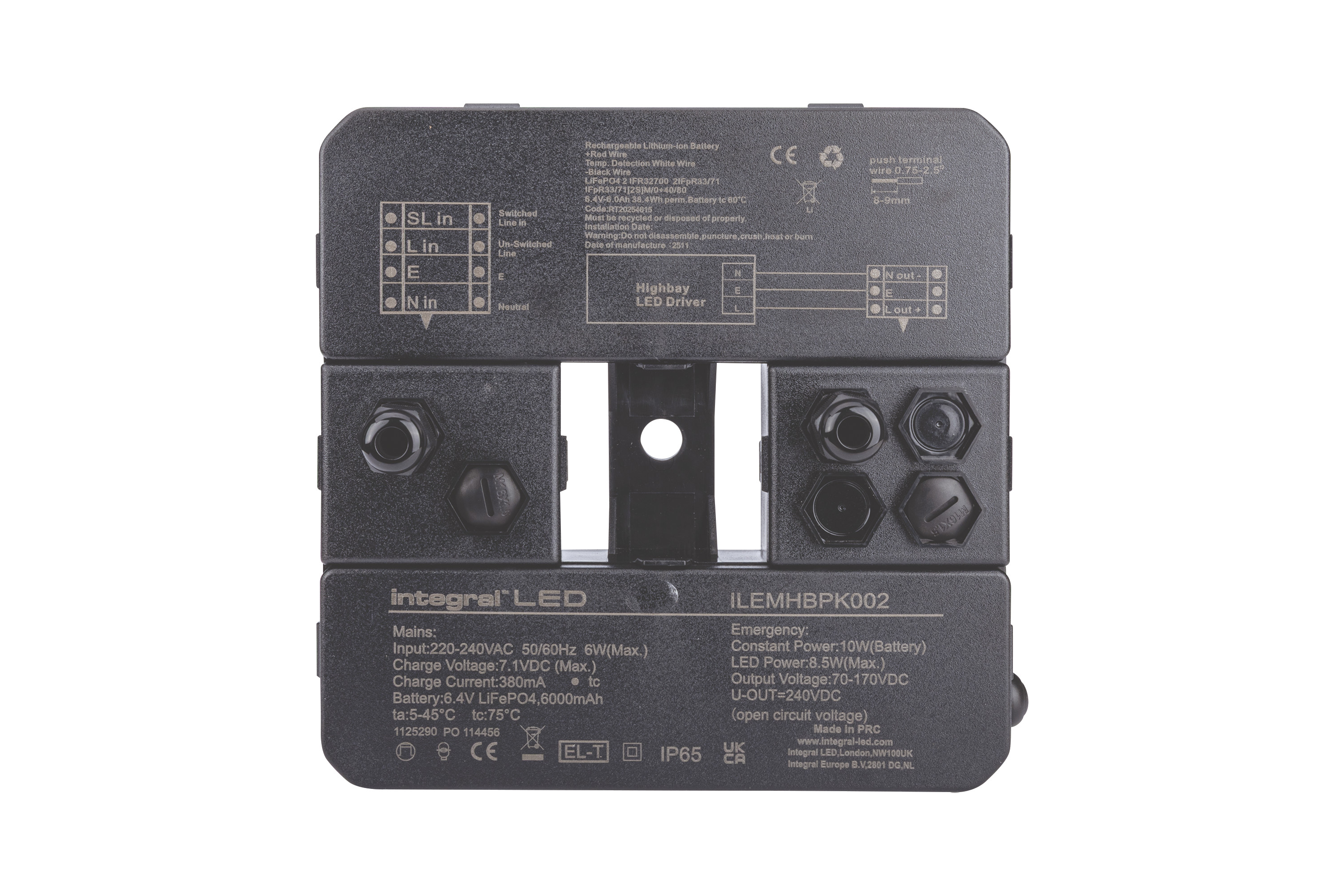 EMERGENCY CONVERSION PACK SUITABLE FOR 200W DRIVER ON BOARD HIGHBAY 10W IP65 650LM SELF TEST LIFEPO4 REPLACABLE BATTERY 5 YEAR WARRANTY INTEGRAL