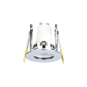 EVOFIRE MINI 55 MICRO BEZEL FIRE RATED DOWNLIGHT 43MM CUTOUT 55MM DIAMETER IP65 POLISHED CHROME ROUND +GU10 HOLDER INTEGRAL