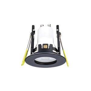 EVOFIRE MINI 55 MICRO BEZEL FIRE RATED DOWNLIGHT 43MM CUTOUT 55MM DIAMETER IP65 BLACK ROUND +GU10 HOLDER INTEGRAL