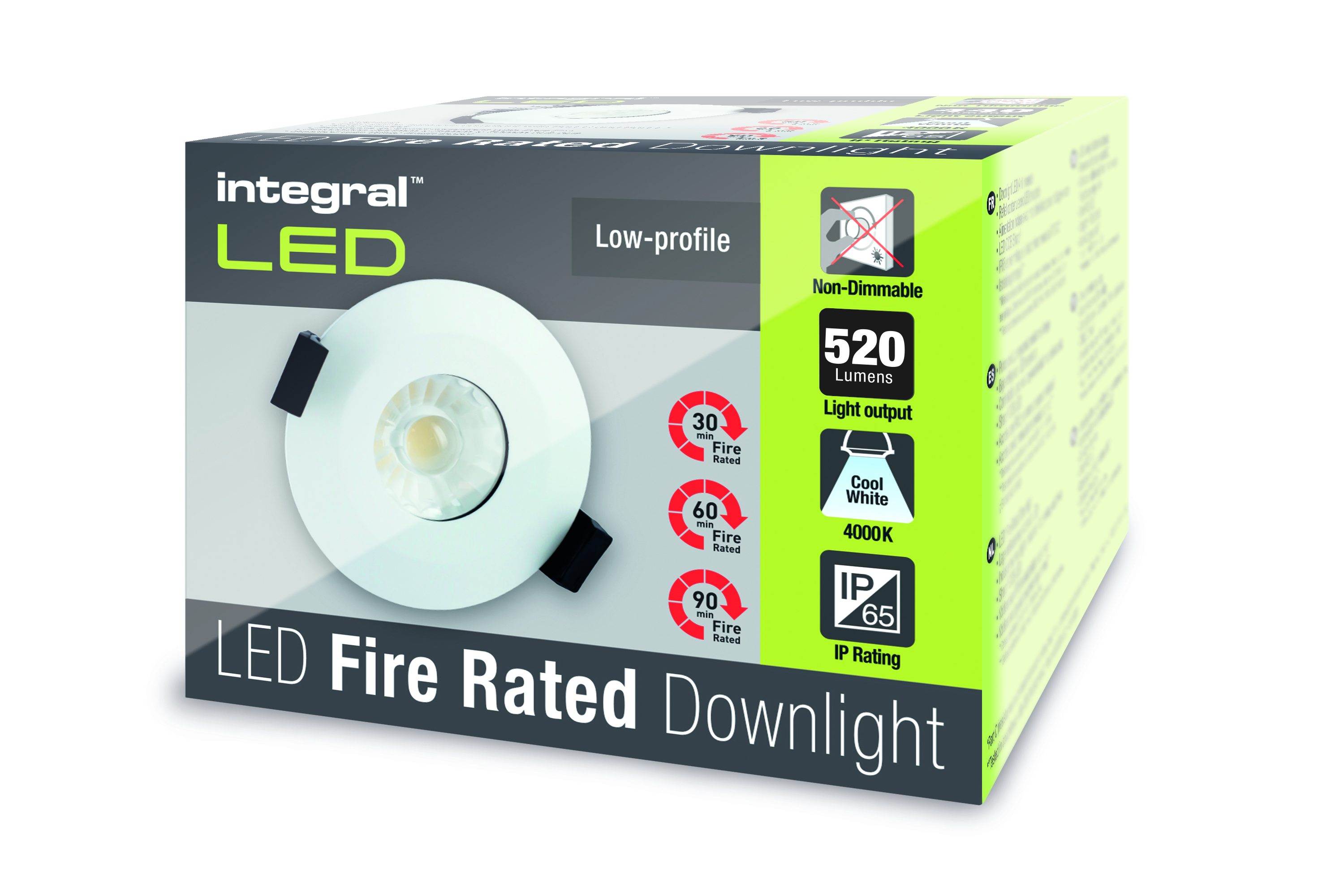 LOW-PROFILE FIRE RATED DOWNLIGHT 70-75MM CUTOUT IP65 520LM 6W 4000K 38 BEAM NON-DIMM 86LM/W WHITE INTEGRAL