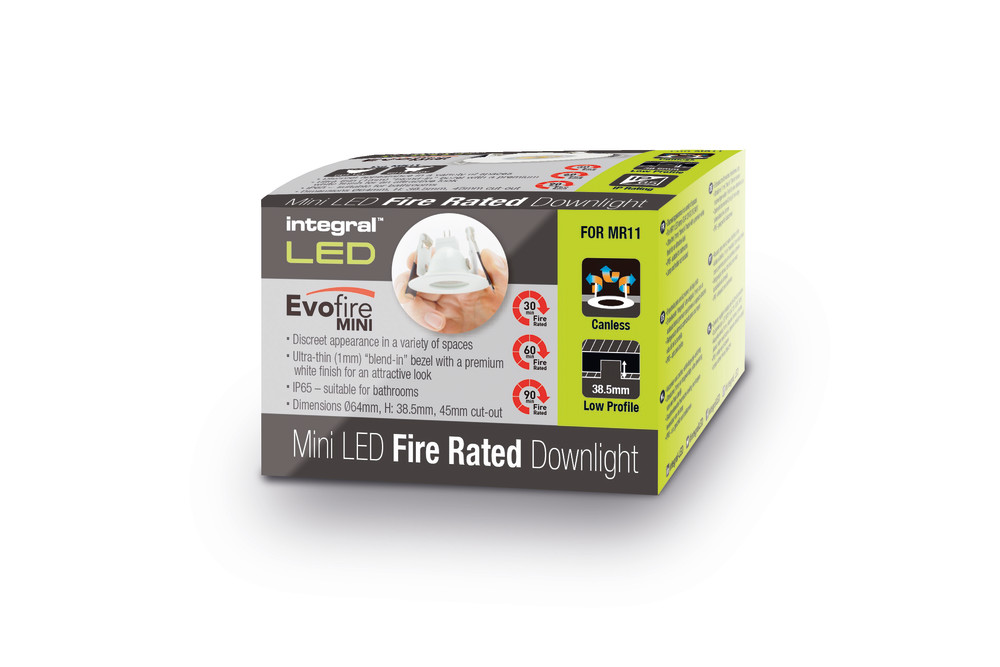EVOFIRE MINI 64 FIRE RATED DOWNLIGHT 45MM CUTOUT IP65 WHITE ROUND INTEGRAL