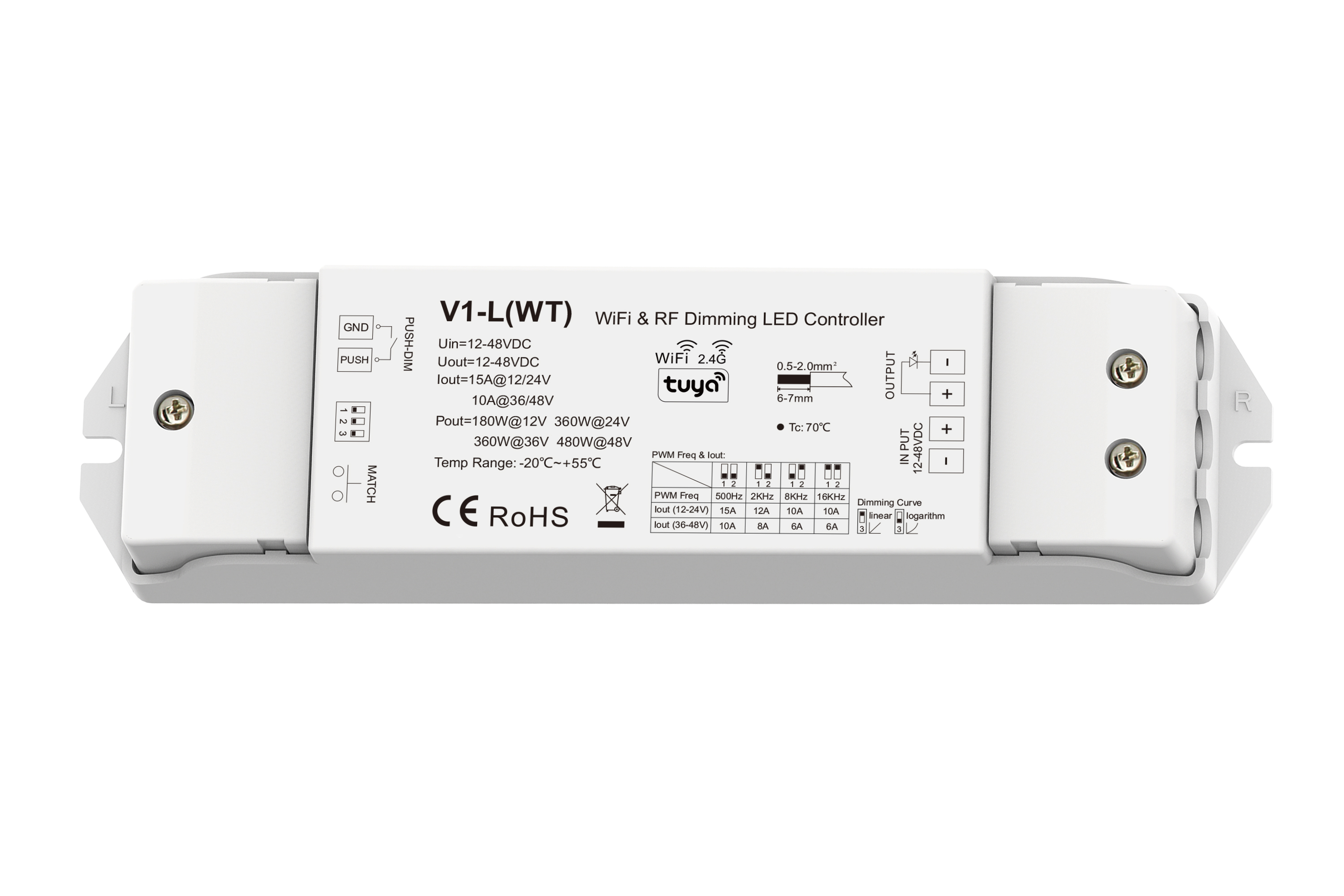SKYDANCE V1-L(WT) LED CONTROLLER WIFI & RF 2.4GHZ RECEIVER APP CONTROLLED SINGLE COLOUR 12-48V CONSTANT VOLTAGE 480W(48V) INTEGRAL