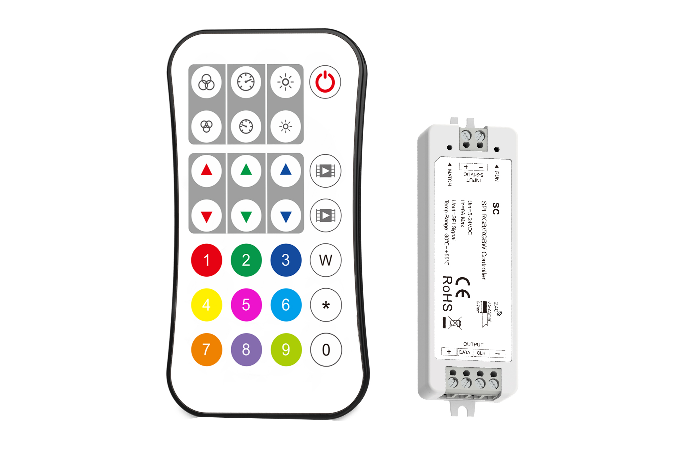 SKYDANCE SC + R9 SIMPLE SPI DIGITAL LED CONTROLLER BUNDLE RF 2.4GHZ RECEIVER & REMOTE RGB/RGBW 12-24V CONSTANT VOLTAGE 1024 PIXELS INTEGRAL