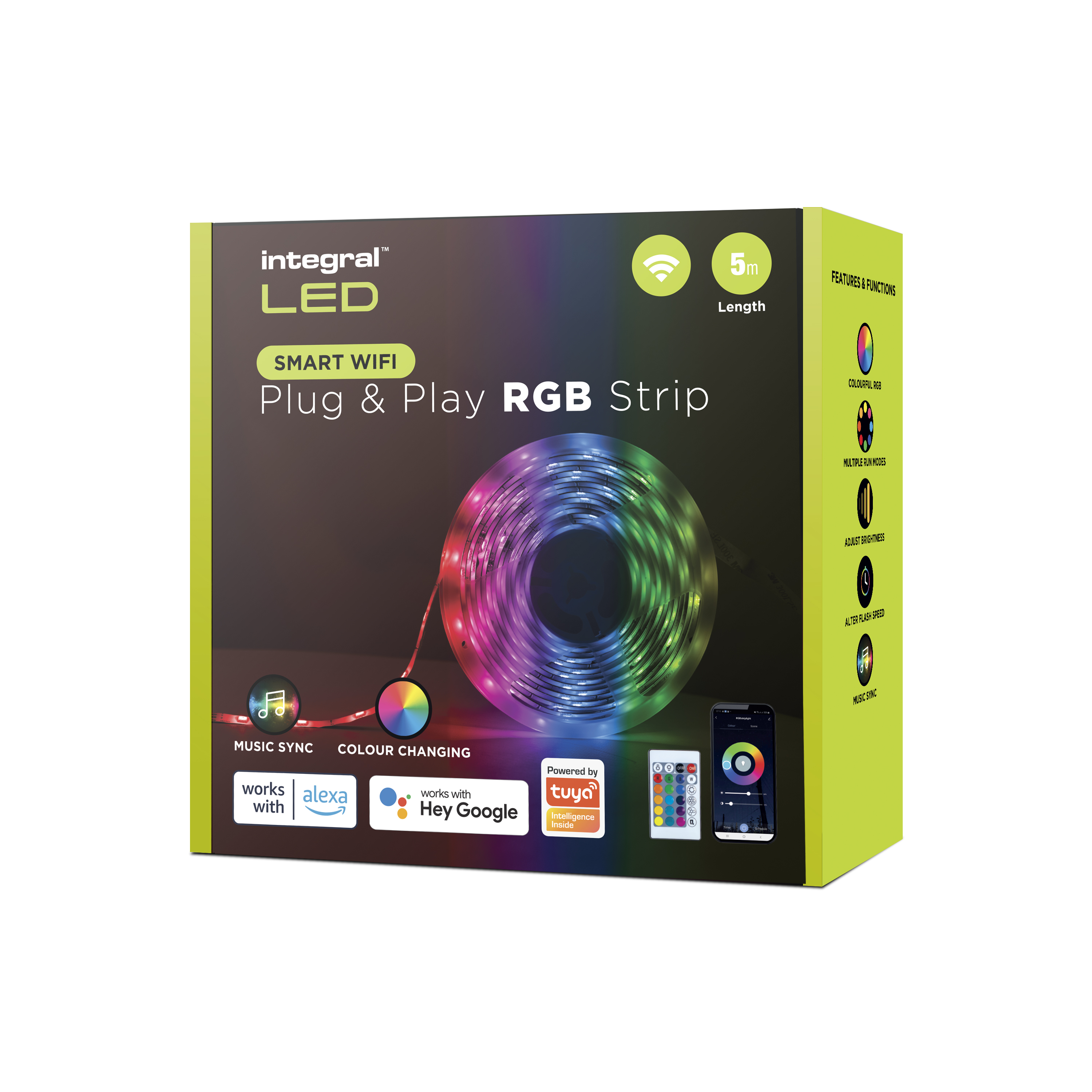 RGB PLUG & PLAY STRIP KIT IP54 4W/M 30LED/M 10MM WIDTH 5M BOX PACK WITH CONTROLLER & TUYA WIFI APP GOOGLE / ALEXA EU PLUG