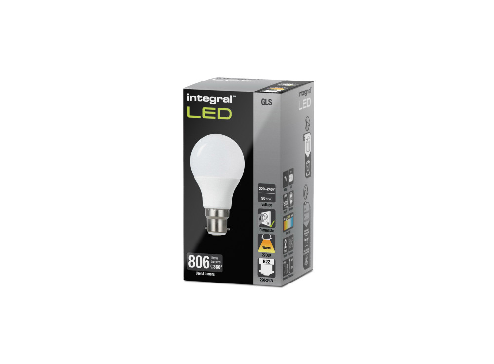 GLS BULB B22 806LM 7W 2700K DIMMABLE 240 BEAM FROSTED INTEGRAL