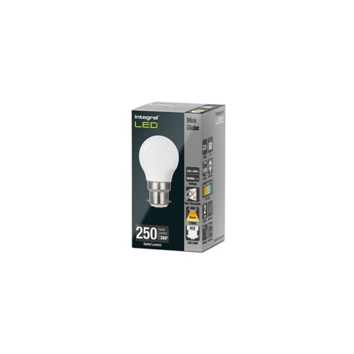 GOLF BALL BULB B22 250LM 2.2W 2700K NON-DIMM 240 BEAM FROSTED INTEGRAL