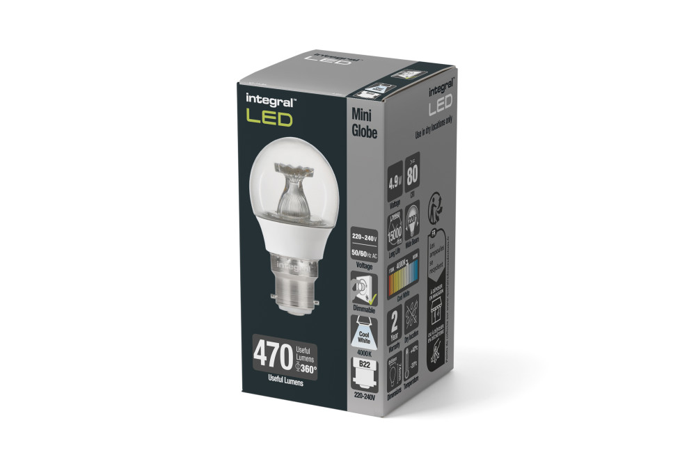 GOLF BALL BULB B22 470LM 4.9W 4000K DIMMABLE 220 BEAM CLEAR INTEGRAL