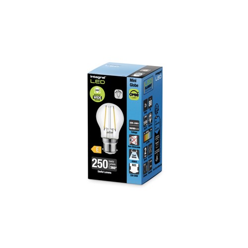 OMNI FILAMENT GOLF BALL BULB B22 250LM 2W 4000K NON-DIMM 320 BEAM CLEAR INTEGRAL