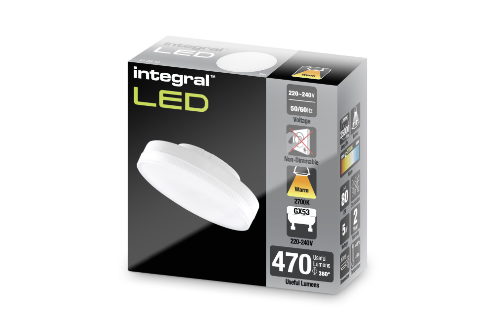 GX53 BULB 470LM 5W 2700K NON-DIMM 110 BEAM FROSTED INTEGRAL