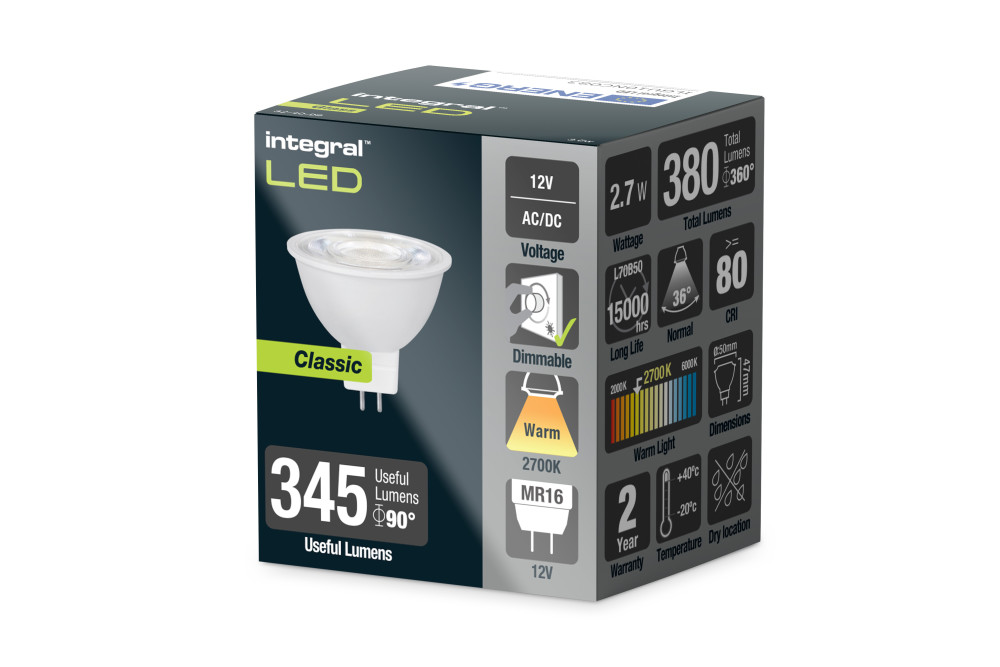 CLASSIC MR16 BULB GU5.3 380LM 2.7W 2700K DIMMABLE 36 BEAM (CLASS D) INTEGRAL