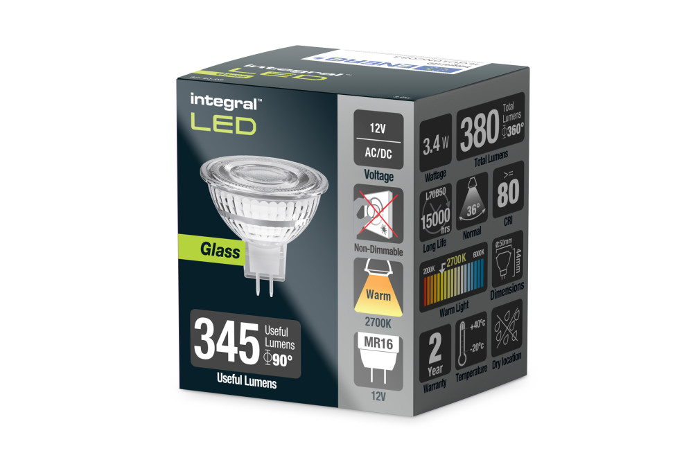 GLASS MR16 BULB GU5.3 380LM 3.4W 2700K NON-DIMM 36 BEAM INTEGRAL