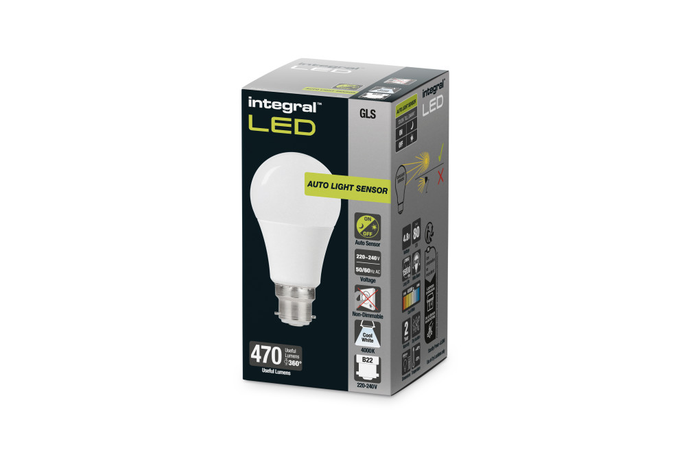 GLS BULB WITH DUSK TO DAWN DUAL SENSOR B22 470LM 4.8W 4000K NON-DIMM 240 BEAM FROSTED INTEGRAL