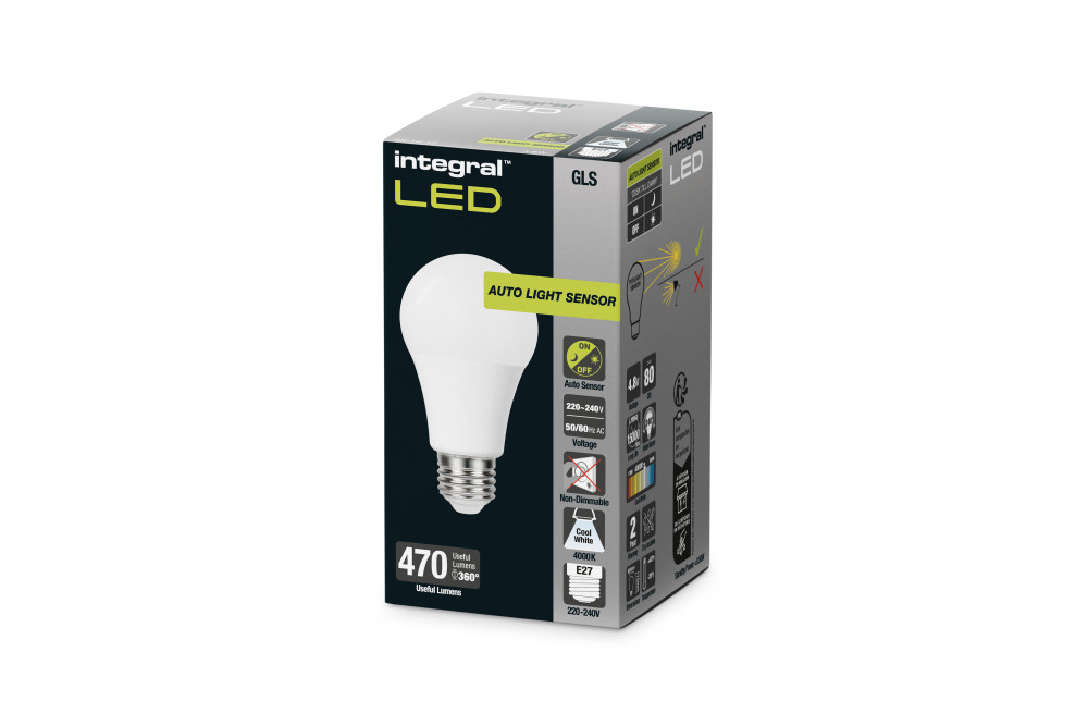 GLS BULB WITH DUSK TO DAWN DUAL SENSOR E27 470LM 4.8W 4000K NON-DIMM 240 BEAM FROSTED INTEGRAL