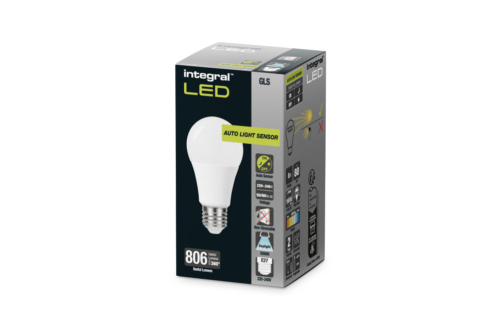 GLS BULB WITH DUSK TO DAWN DUAL SENSOR E27 806LM 8W 5000K NON-DIMM 240 BEAM FROSTED INTEGRAL