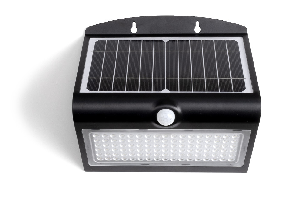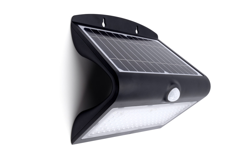 TRUE SOLAR OUTDOOR WEDGE WALL LIGHT PIR IP65 850LM 8W 4000K BLACK INTEGRAL