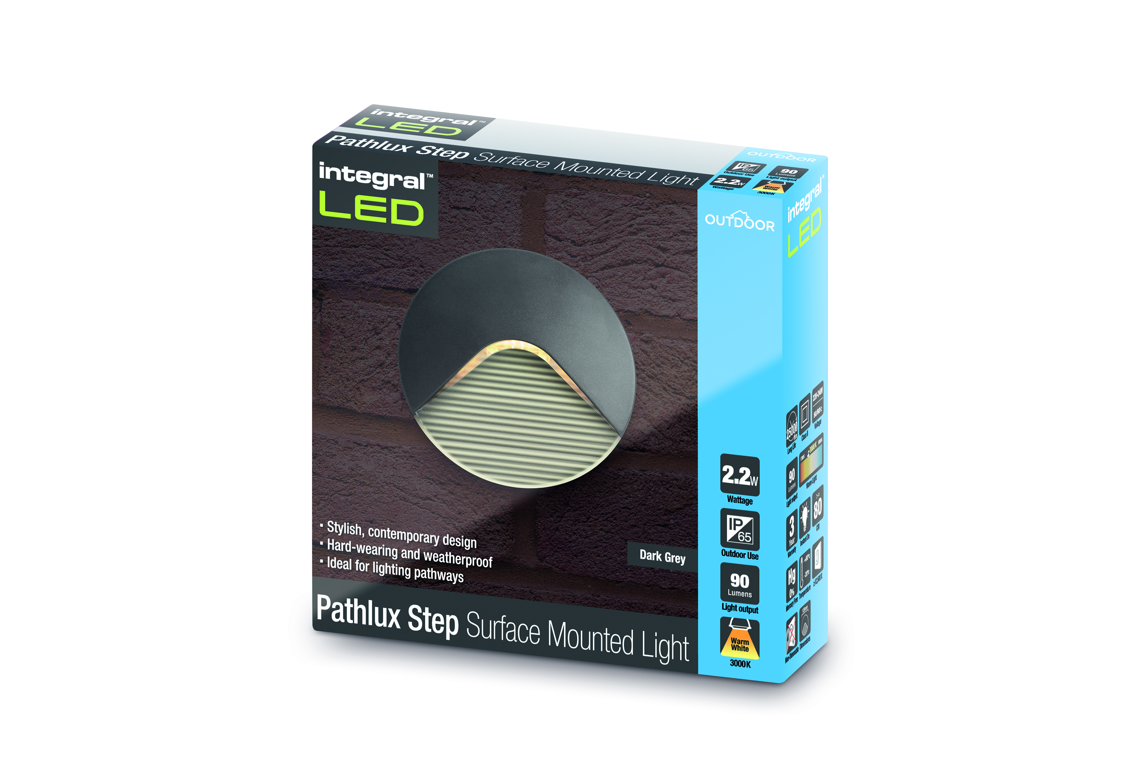 OUTDOOR DECORATIVE WALL LIGHT PATHLUX STEP IP65 90LM 2.2W 3000K DOWN LIGHT DARK GREY INTEGRAL