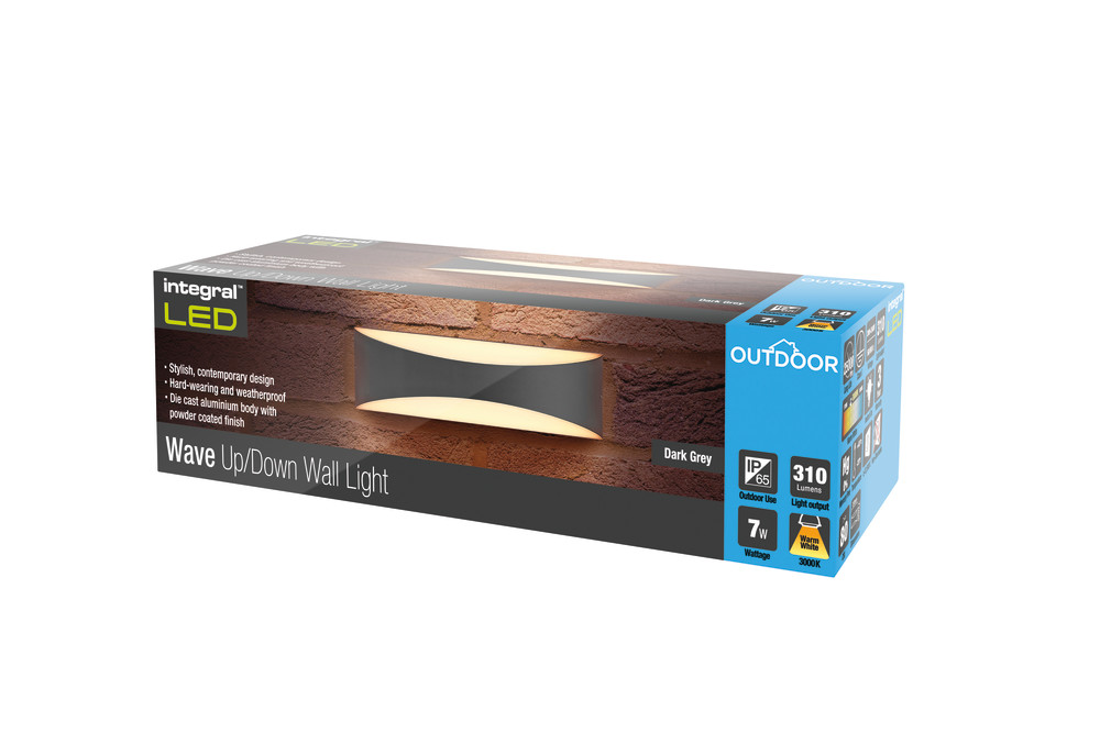 OUTDOOR DECORATIVE WALL LIGHT WAVE IP65 310LM 7W 3000K UP/DOWN LIGHT DARK GREY INTEGRAL