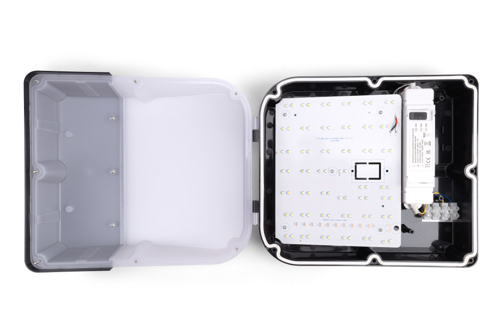 Le luminaire est doté d'un corps en polycarbonate qui offre une protection IK10 et IP65, ce qui le rend suffisamment robuste pour les installations les plus exigeantes. Adapté aux environnements intérieurs et extérieurs, il offre des options CCT commutables de 3000K, 4000K et 6000K, ainsi que des réglages de puissance réglables pour répondre aux diverses exigences d'application.